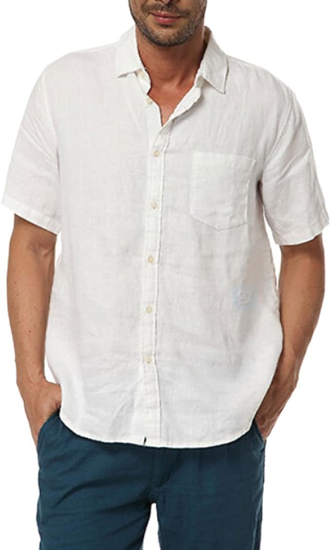 - Mens short sleeve white linen shirt free shipping