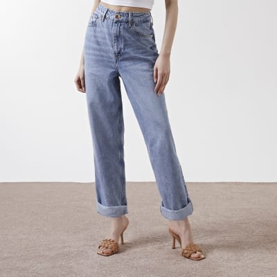 River island mom jeans Clearance, Blue high waisted slouchy mom jeans Clearance
