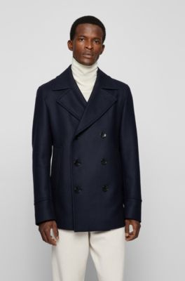 Hugo boss pea coat mens Clearance, BOSS - Slim-fit pea coat in a wool blend Clearance