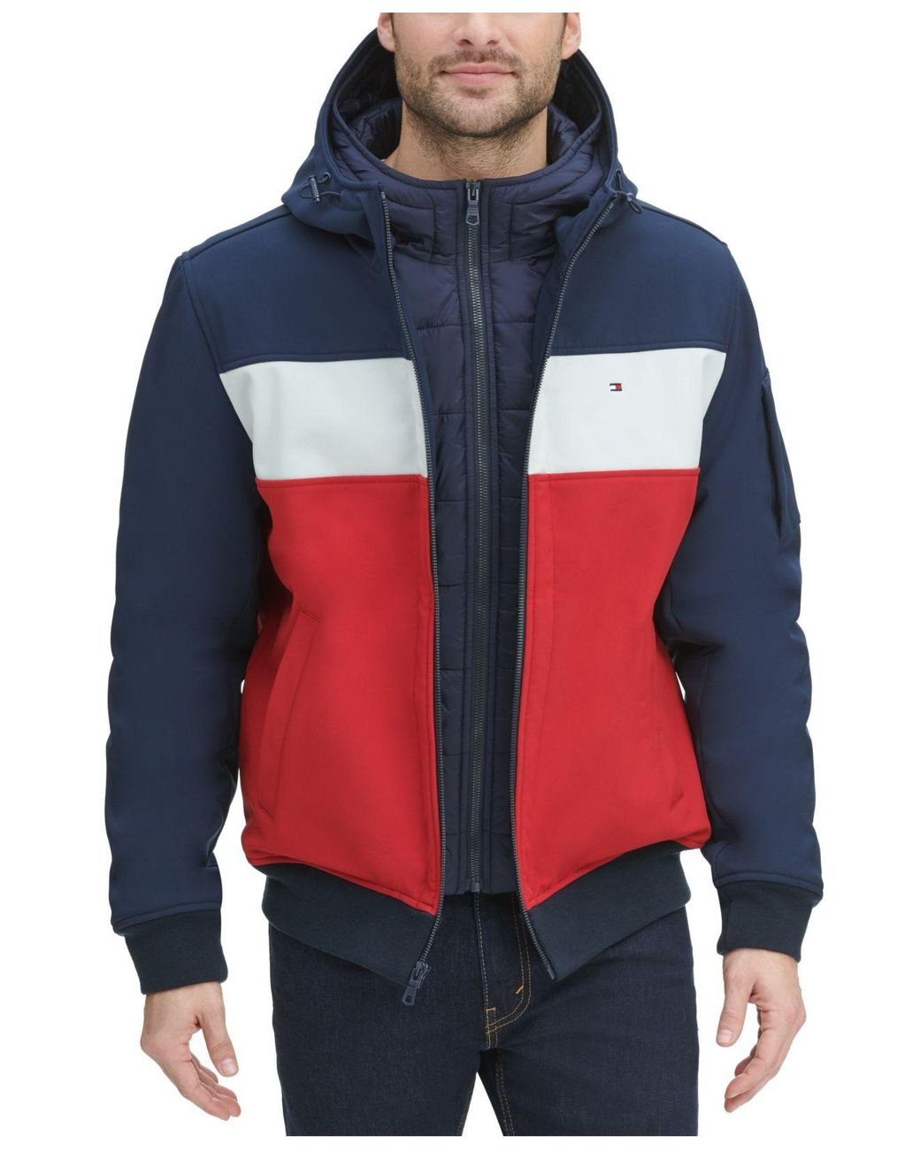 Tommy hilfiger men's soft shell fashion bomber with contrast bib and hood Clearance, Tommy Hilfiger Synthetic Soft-shell Clearance