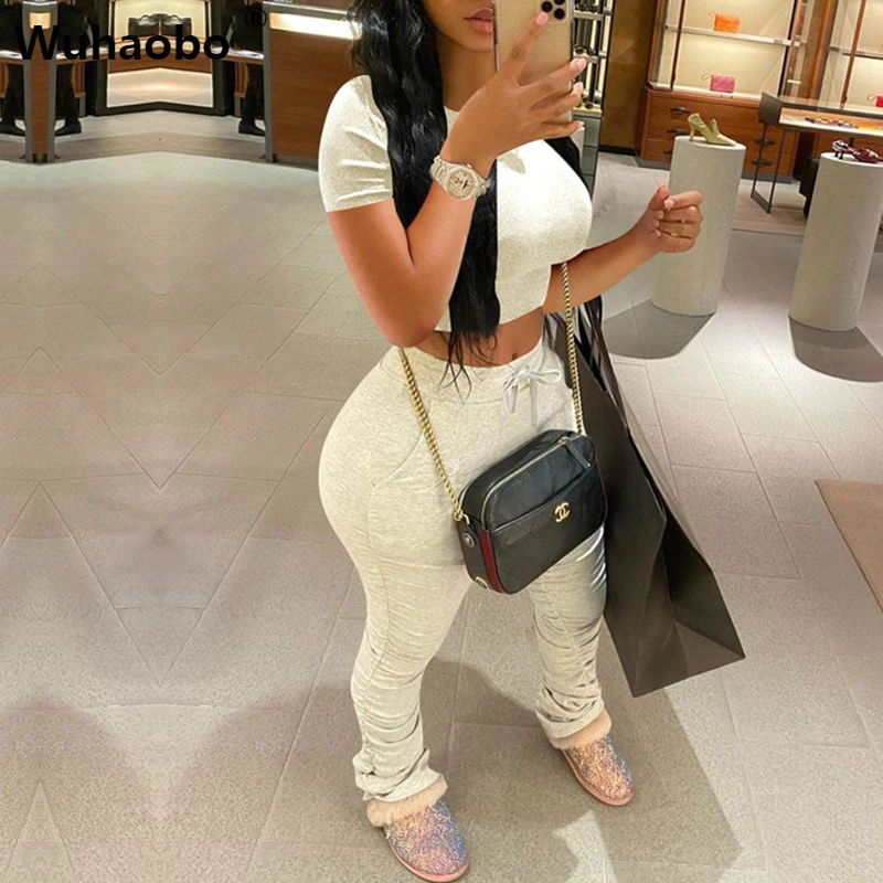 Beige stacked pants Clearance, Wuhaobo 2 Piece Set Women Crop Top And Clearance
