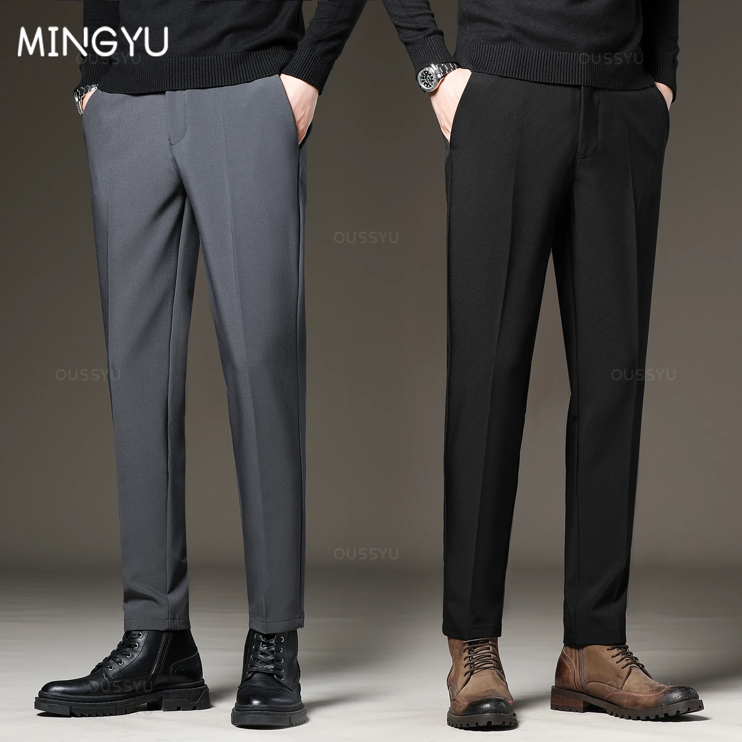 Hosen für große schlanke männer Clearance, Neue Herren anzug hose schlanke Geschäfts stelle elastische Taille schwarz grau klassische Hose koreanische Hose männlich plus Größe 27-38 40 42 - AliExpress Clearance