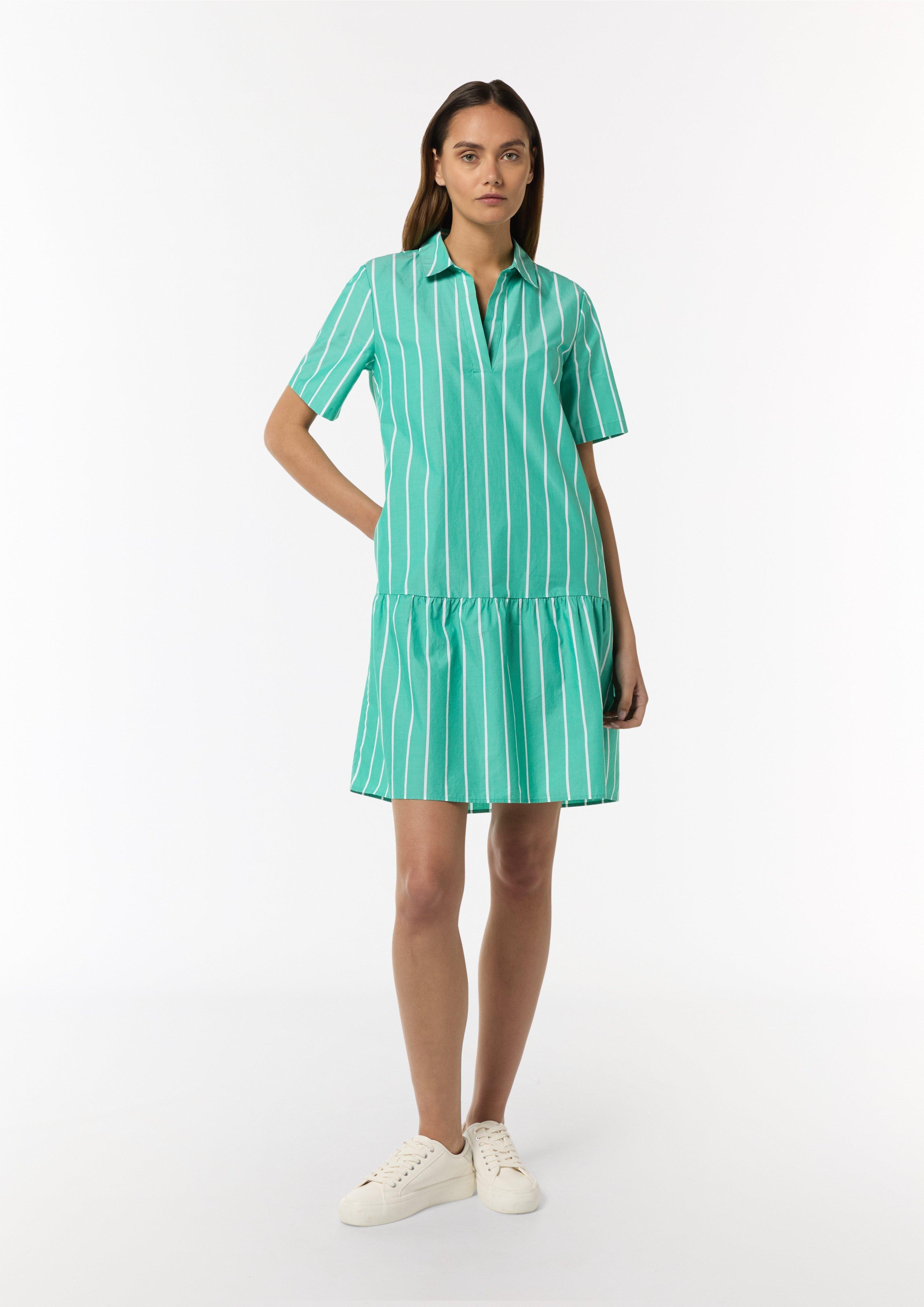 Kleid grün comma Clearance, Baumwoll-Kleid mit Volant-Saum und Hemdkragen - grün | Comma Clearance