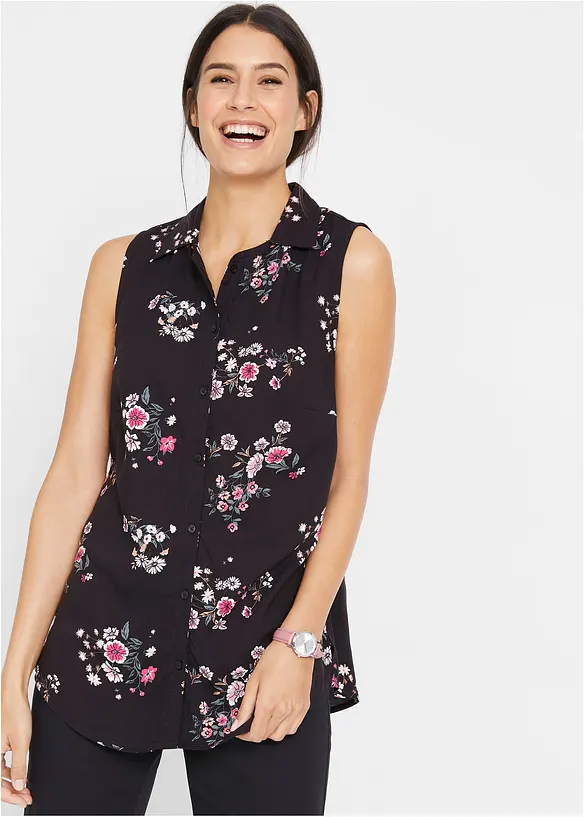 ärmellose bluse bonprix Clearance, Vielseitig kombinierbare Viskose-Bluse ohne Ärmel - schwarz Clearance