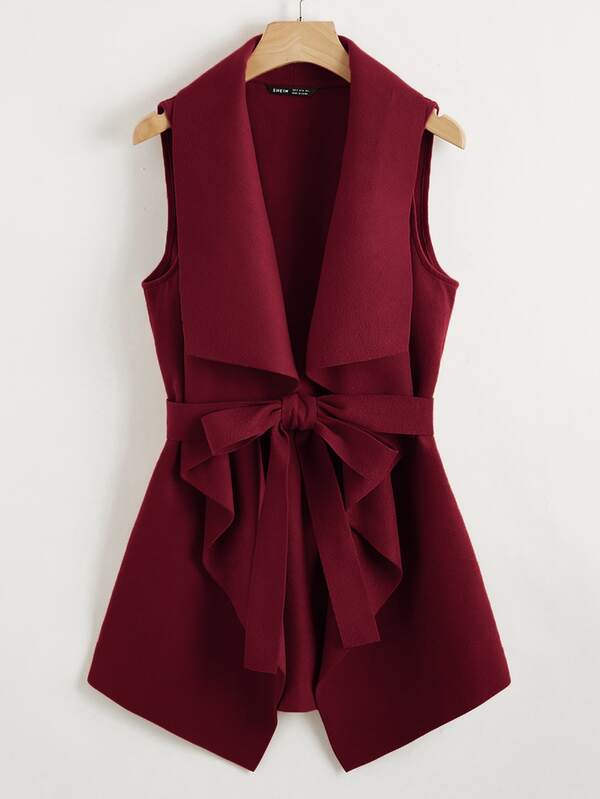 - Waterfall neck belted vest coat shop