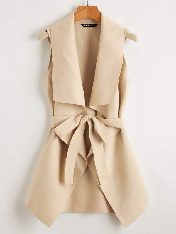 Waterfall neck belted vest coat Clearance, SHEIN Waterfall Neck Belted Vest Coat Clearance