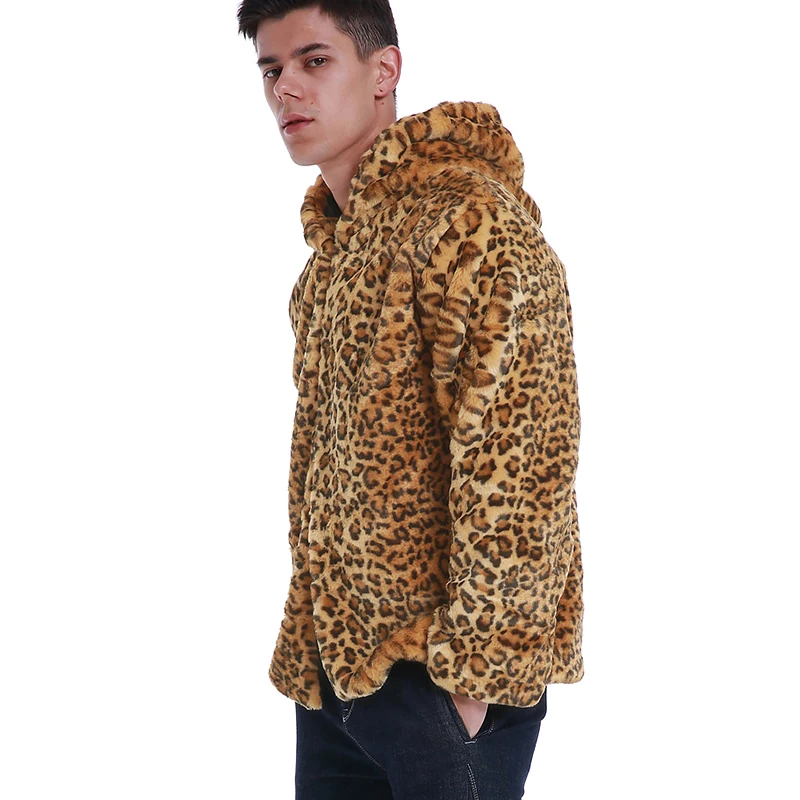 Leopard print hooded jacket Clearance, Women's Leopard Print Faux Fur Coat Clearance