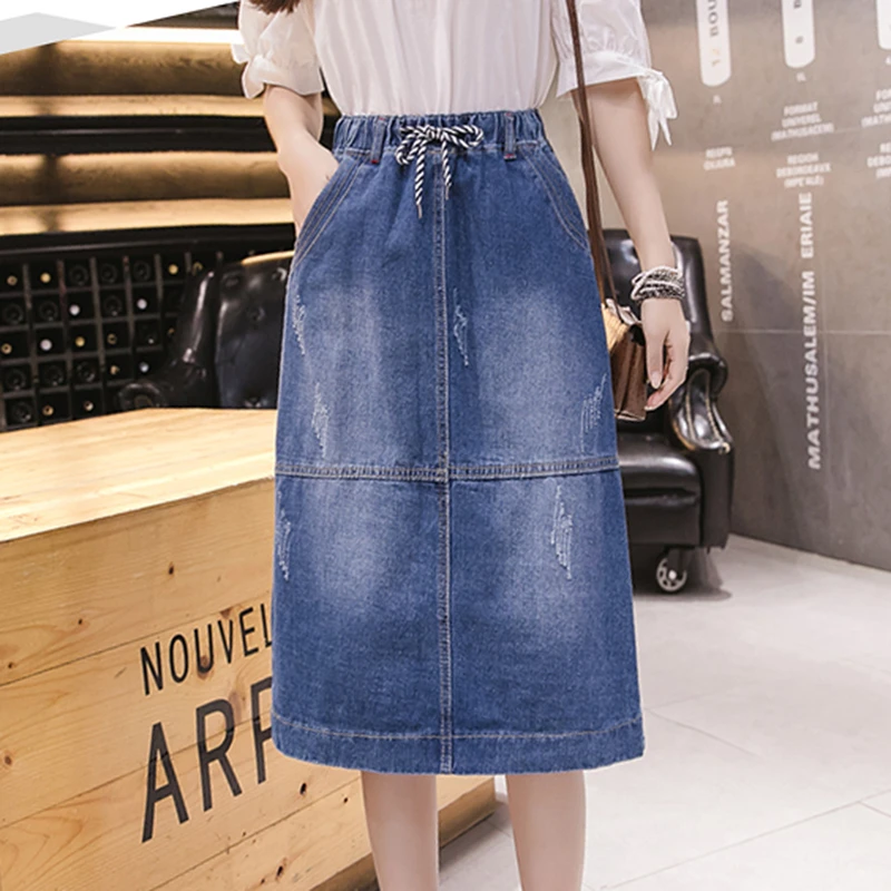 - Plus size denim skirt with elastic waist sale online