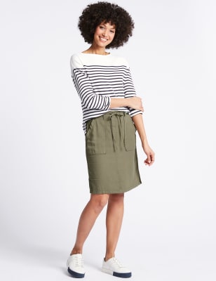 Marks and spencer elasticated waist skirts Clearance, Linen Midi A-Line Skirt | M\u0026S Clearance