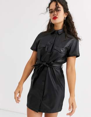 - Shopping Leather tie waist dress