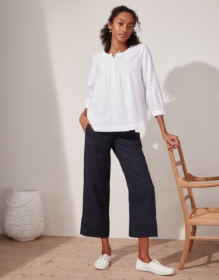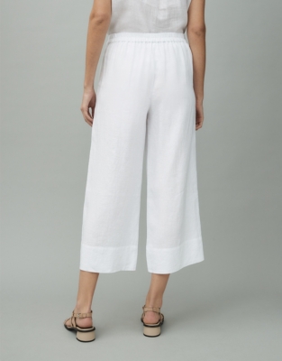 - White linen wide leg crop pants
