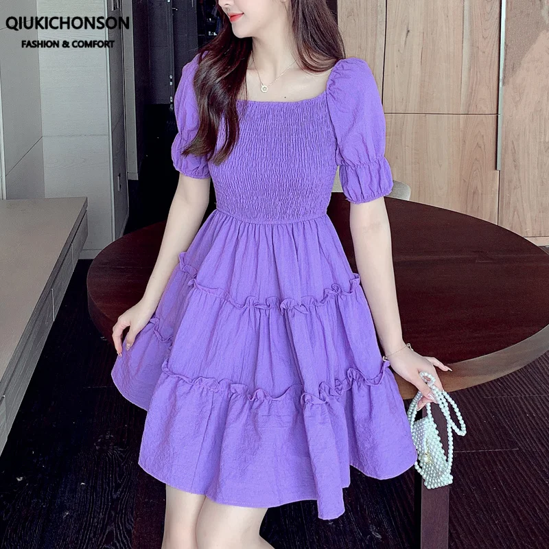 Purple puff dress Clearance, Short Puff Sleeve Midi Dress Purple Clearance