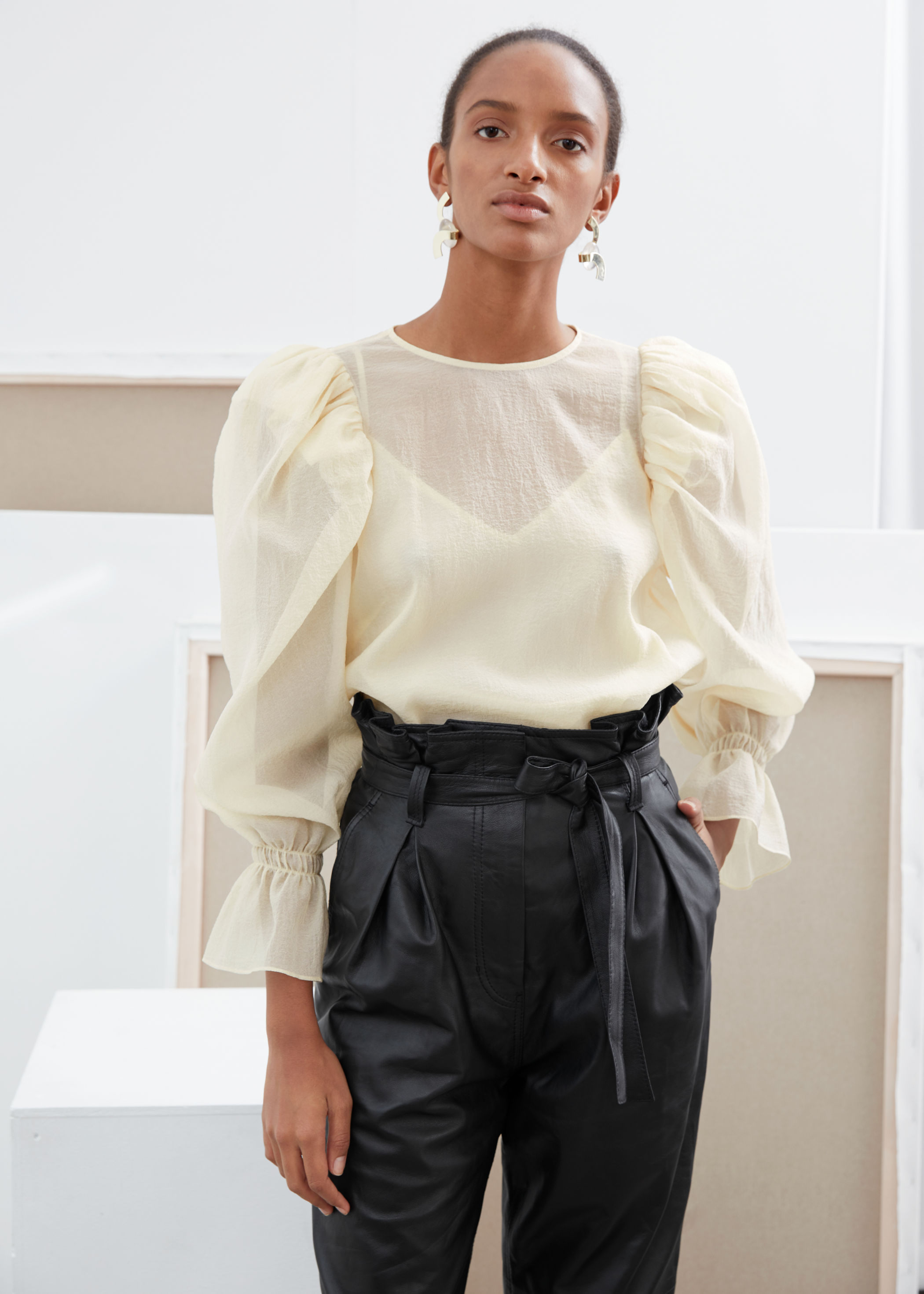 - Sheer puff sleeve blouse