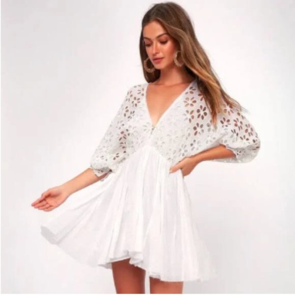 - Bella note white eyelet mini dress