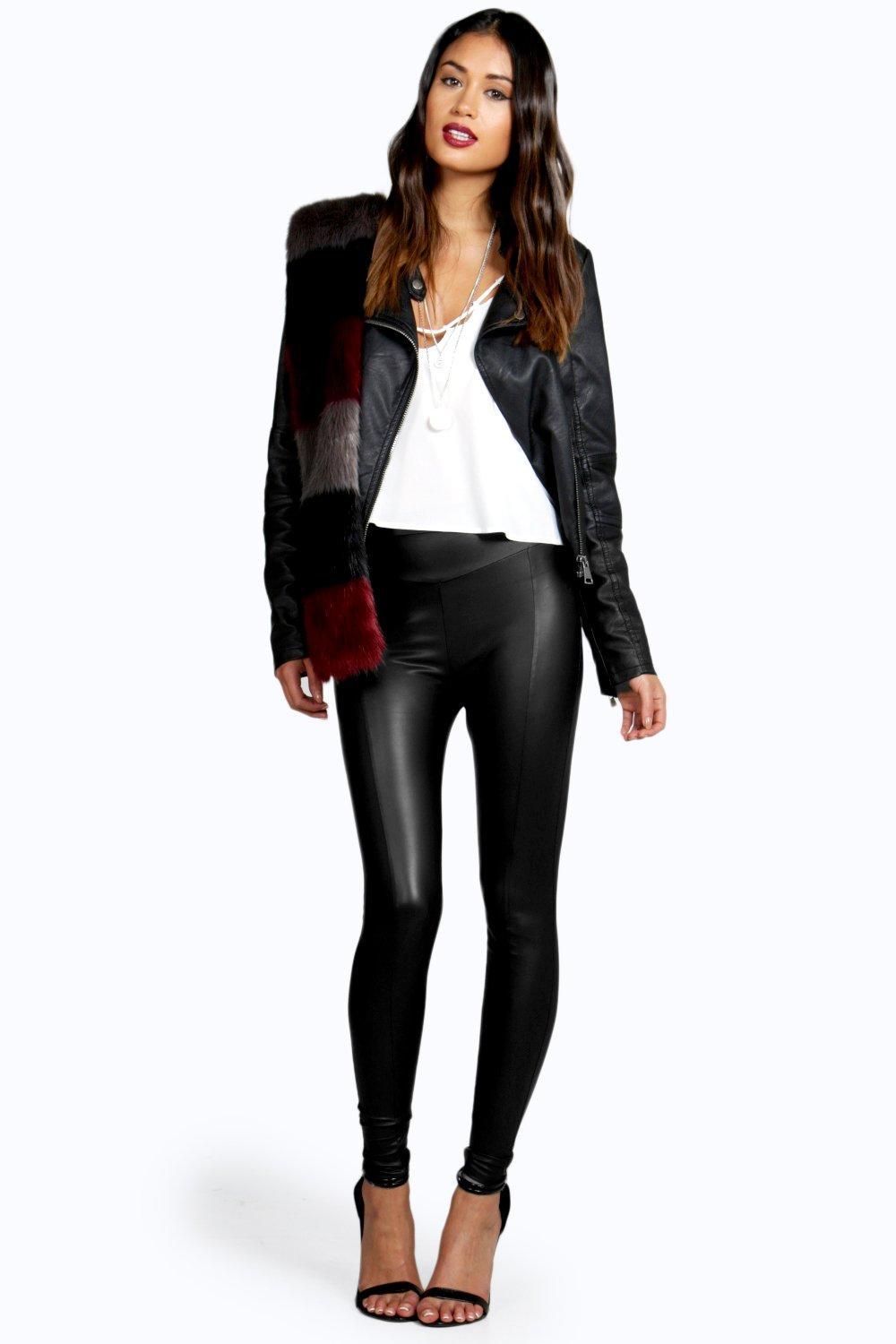 - Black seamed leather look leggings shop