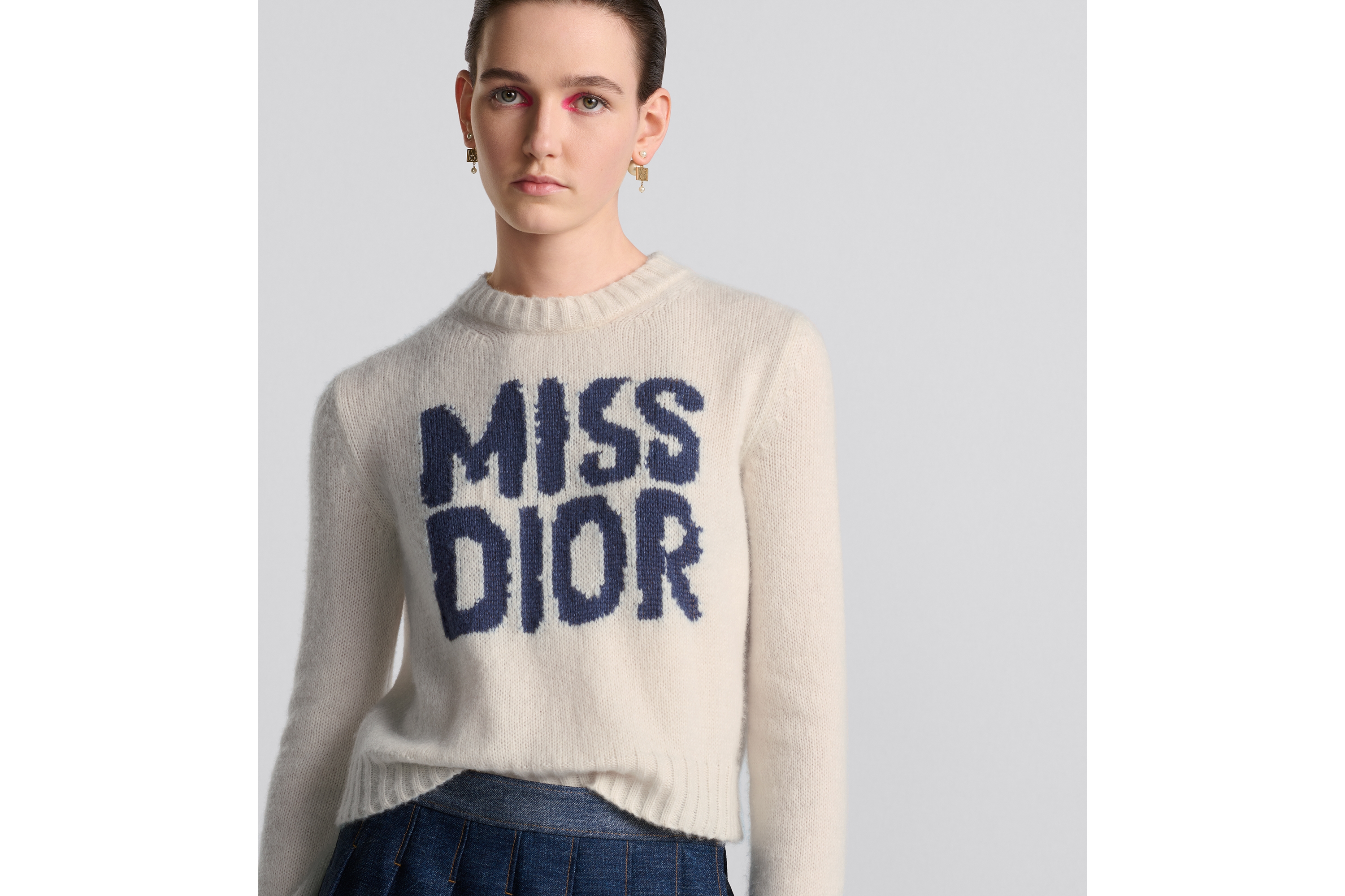 Dior pullover damen Clearance, Pullover Kaschmir- und Seidenstrick in Ecru mit Miss Dior Graffiti Motiv in Blau | DIOR Clearance