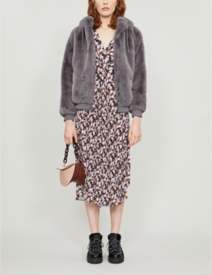 - Maje hooded faux fur jacket shop