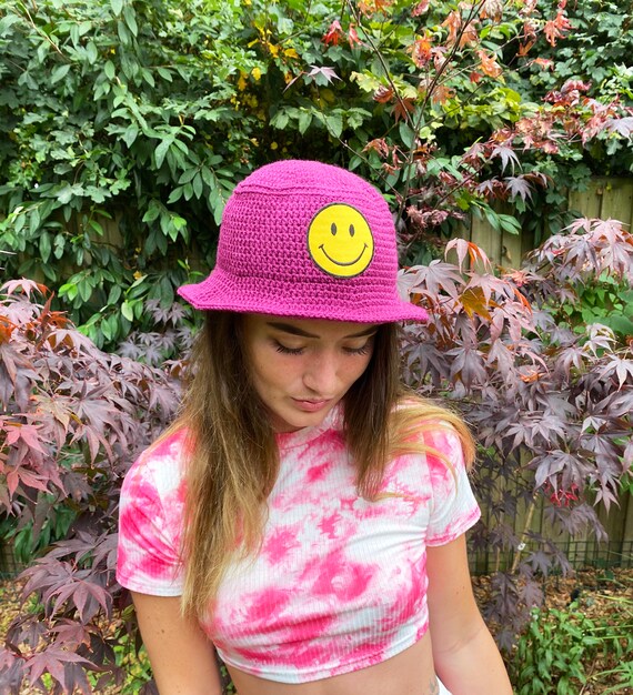 90s crochet bucket hat Clearance, 90s SMILEY FACE Crochet Bucket Hat | Etsy Clearance