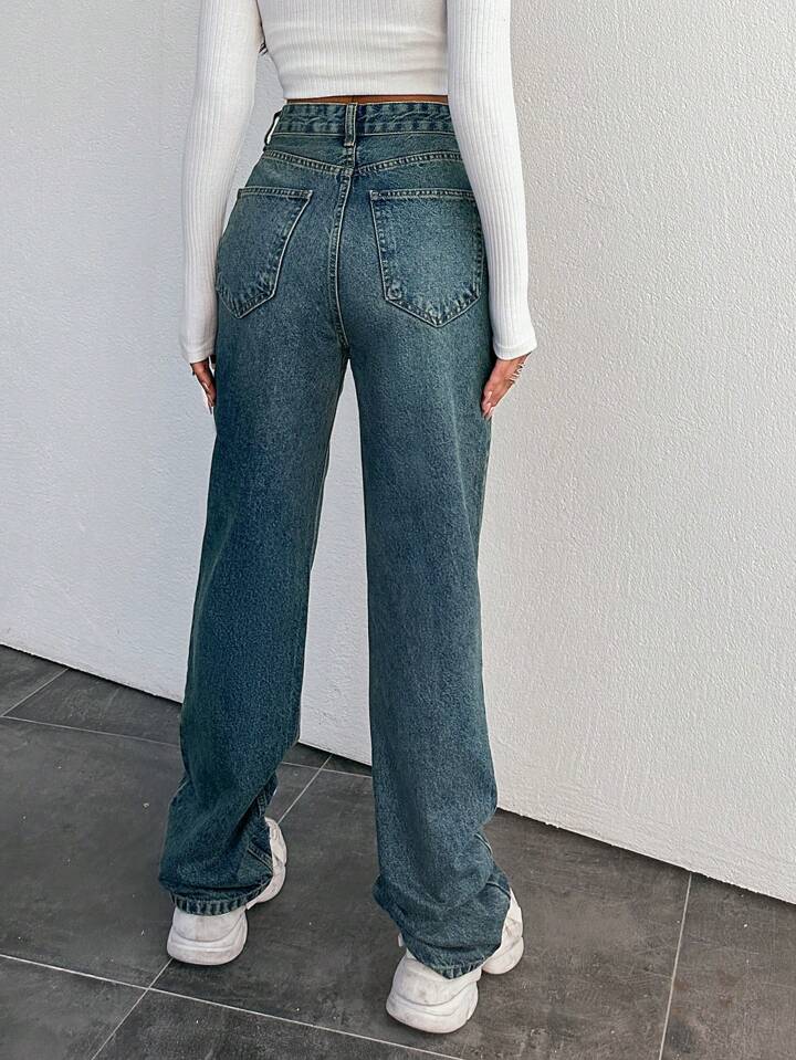 Shein baggy jeans damen Clearance, SHEIN EZwear Weite Bein Denim Jeans Für Damen | aktuelle Trends, günstig kaufen | SHEIN Deutschland Clearance