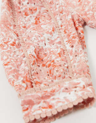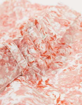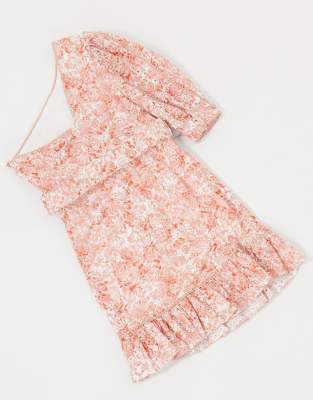 - Dark pink one shoulder belted mini dress with frill hem in peach nectar print outlet