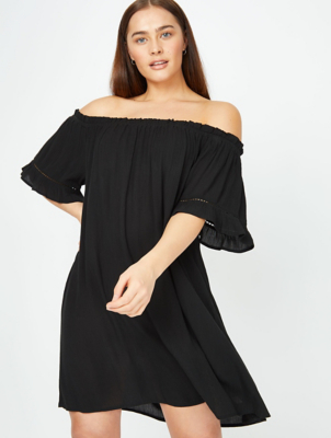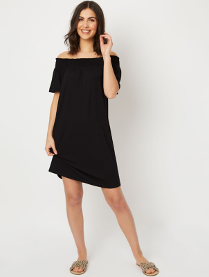 Asda black dresses Clearance, Black Shirred Bardot Mini Dress | Women Clearance