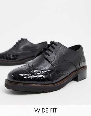 Dune black brogues Clearance, Dune wide fit lace up brogue in high Clearance