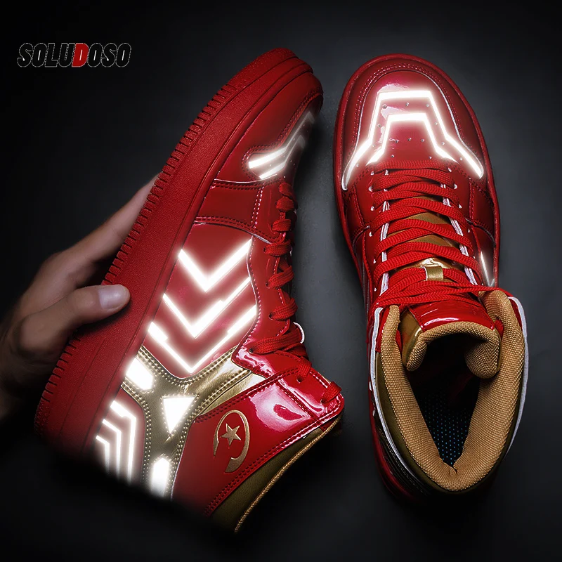 Mens red designer sneakers Clearance, Iron Man Mens High Top Sneakers Red Clearance