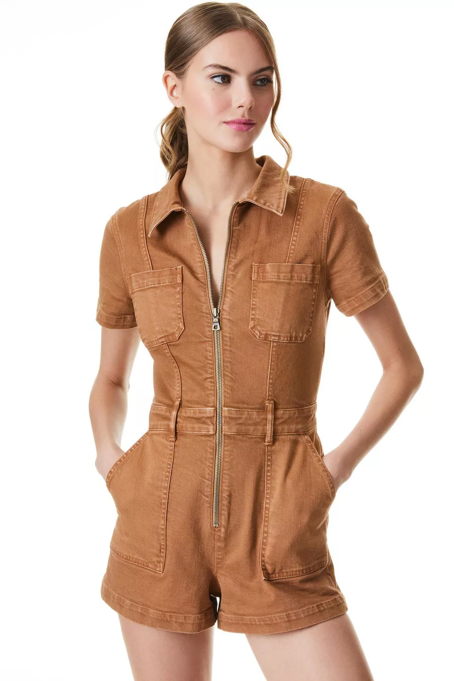 Zip front romper Clearance, Denim Zipper Front Romper with Pockets Clearance