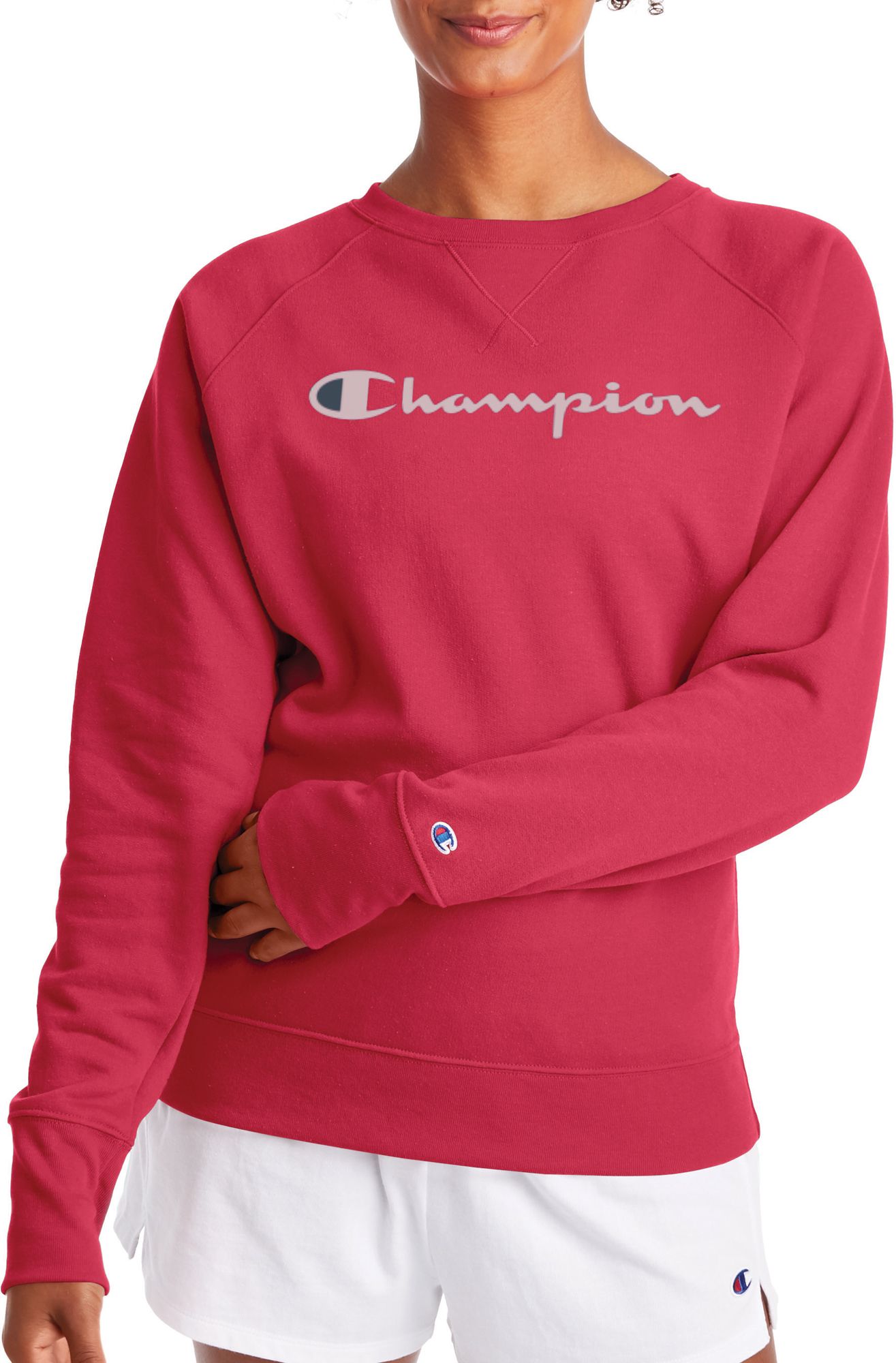 - Champion women's script logo powerblend boyfriend crew sweatshirt sale