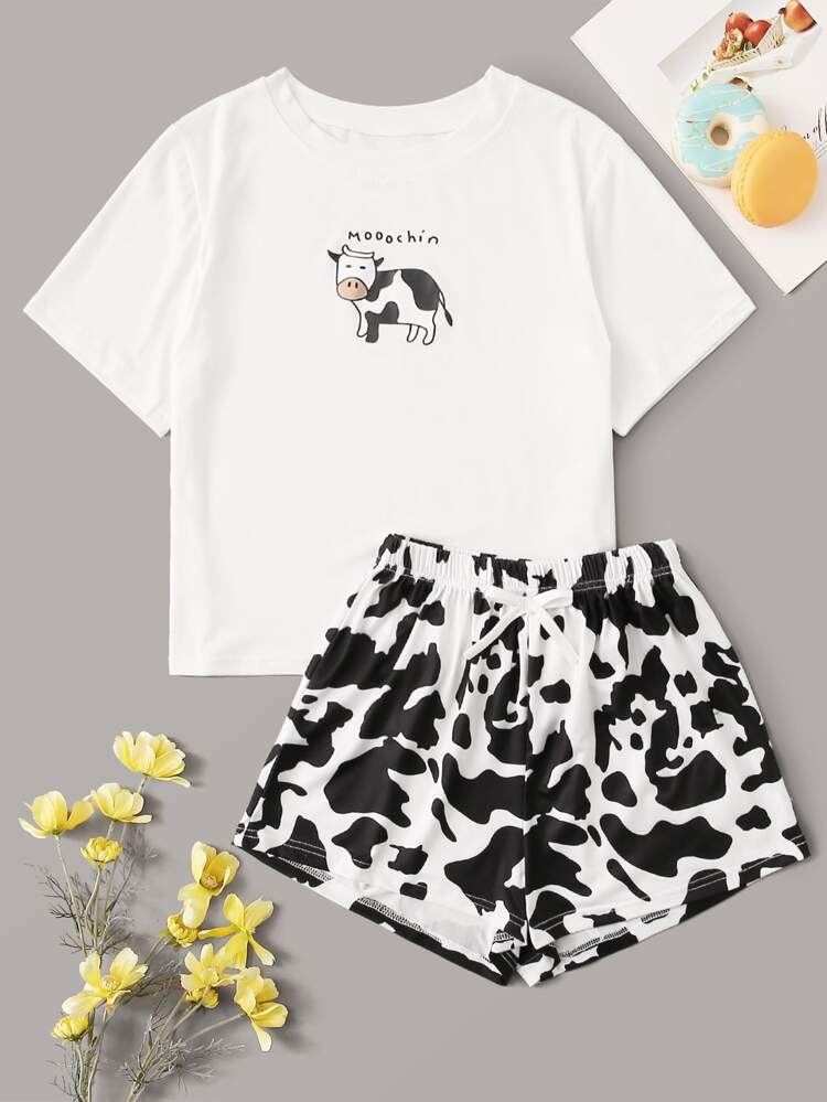 - Cow print pajama shorts