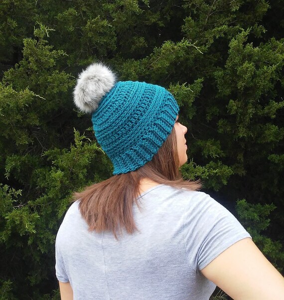 Teal pom pom hat Clearance, Teal Faux Fur Pom Pom Beanie Hat by CC Clearance