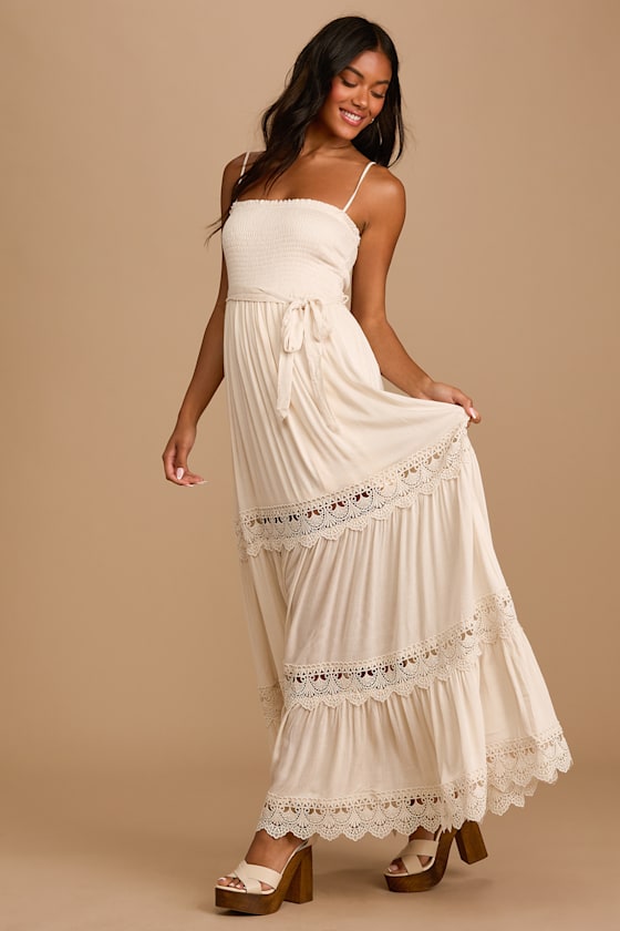 - Cream tiered maxi dress sale
