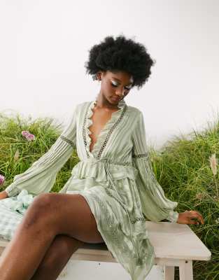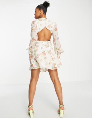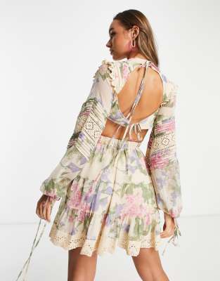 Asos design minikleid Clearance, ASOS DESIGN – Minikleid mit Spitzen-Besatz und Blumenprint Clearance