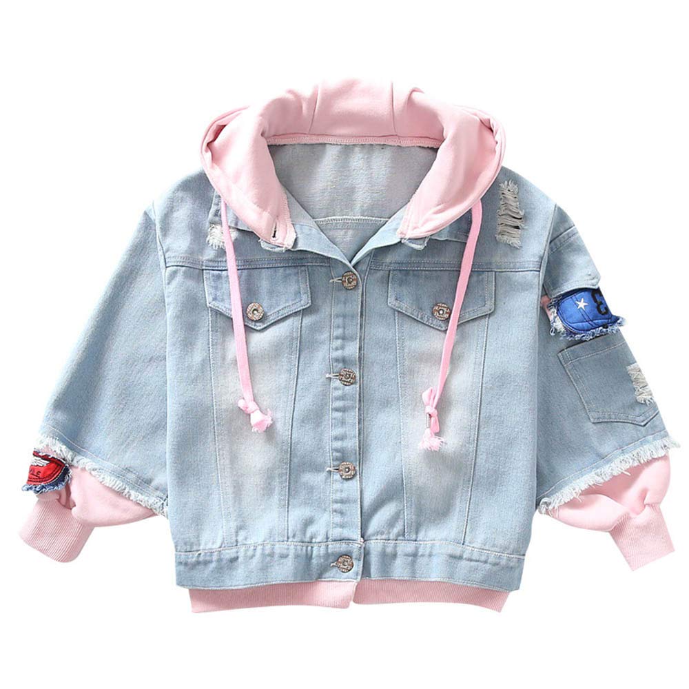 Girls hooded denim jacket Clearance, Fashion Stitching Hooded Denim Jacket Clearance