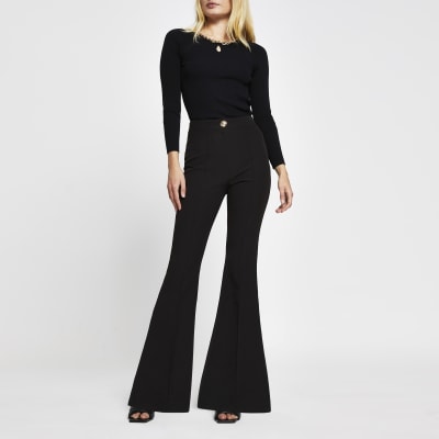 - River island black flared trousers sale online