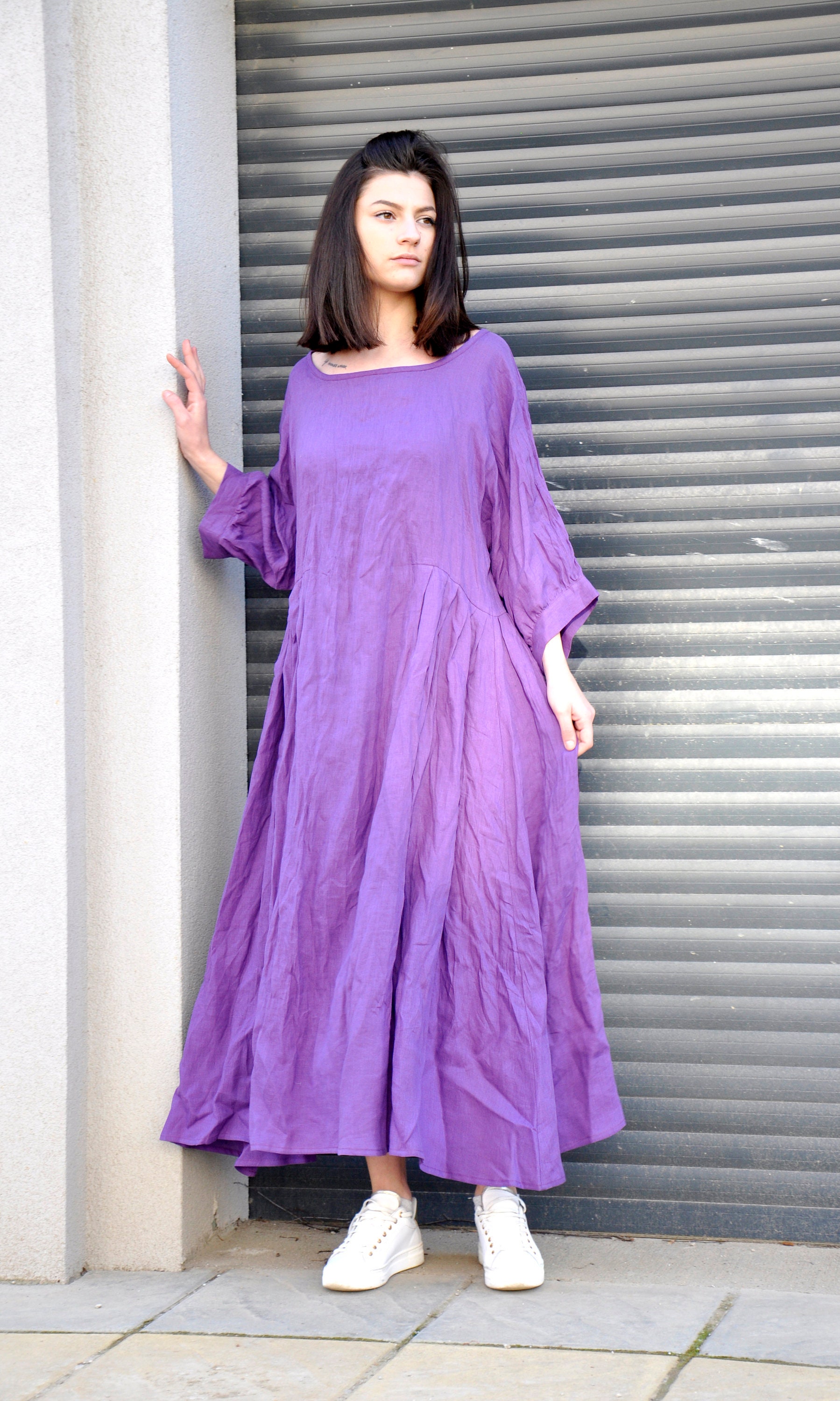 Purple linen dress Clearance, Purple Linen Dress Summer Maxi Women Clearance