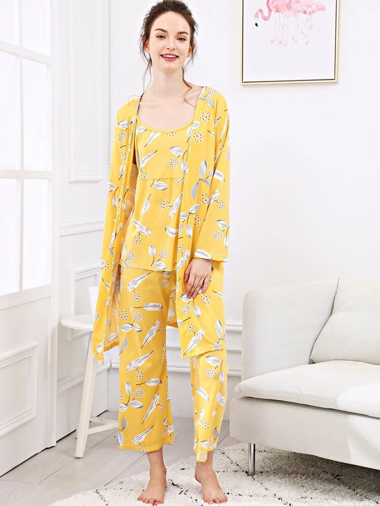 - Leaf print cami pj set with robe sale online