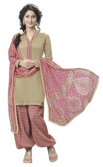 - Cheap Beige colored cotton fancy wear salwar suit