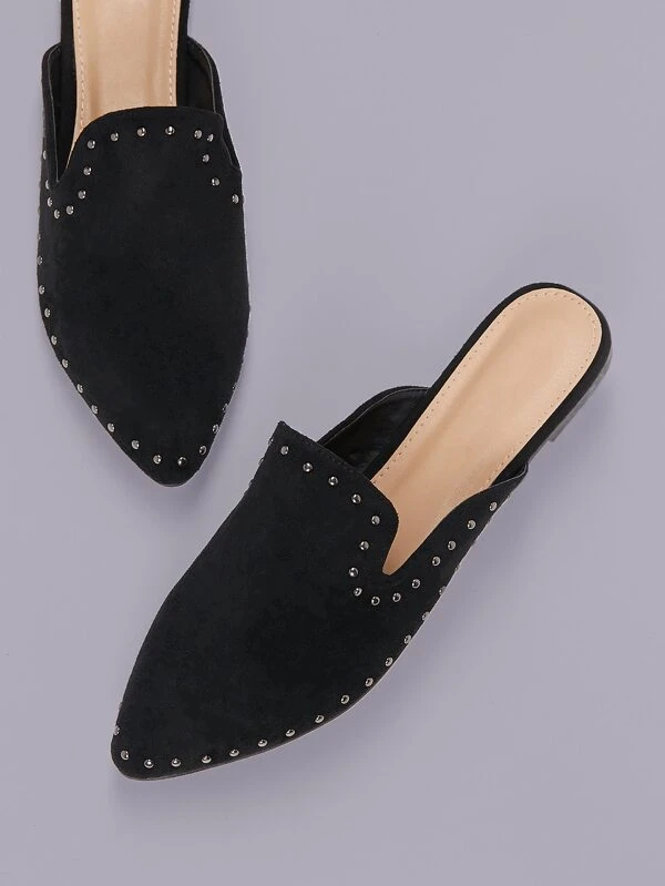 Round toe flat mules Clearance, Stud Detail Pointed Toe Flat Mules Clearance