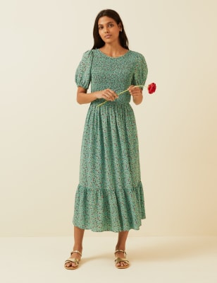 Shirred puff sleeve midi dress Clearance
