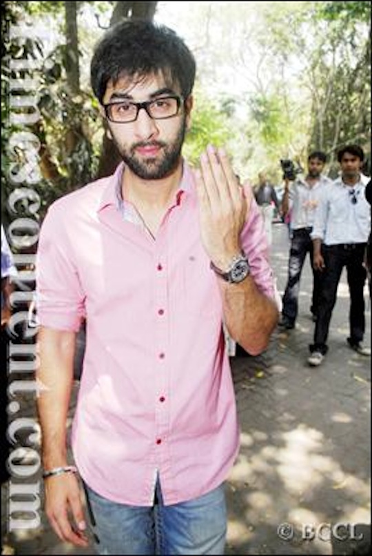 Ranbir kapoor pink shirt Clearance, Actor Ranbir Kapoor showing voting mark Clearance