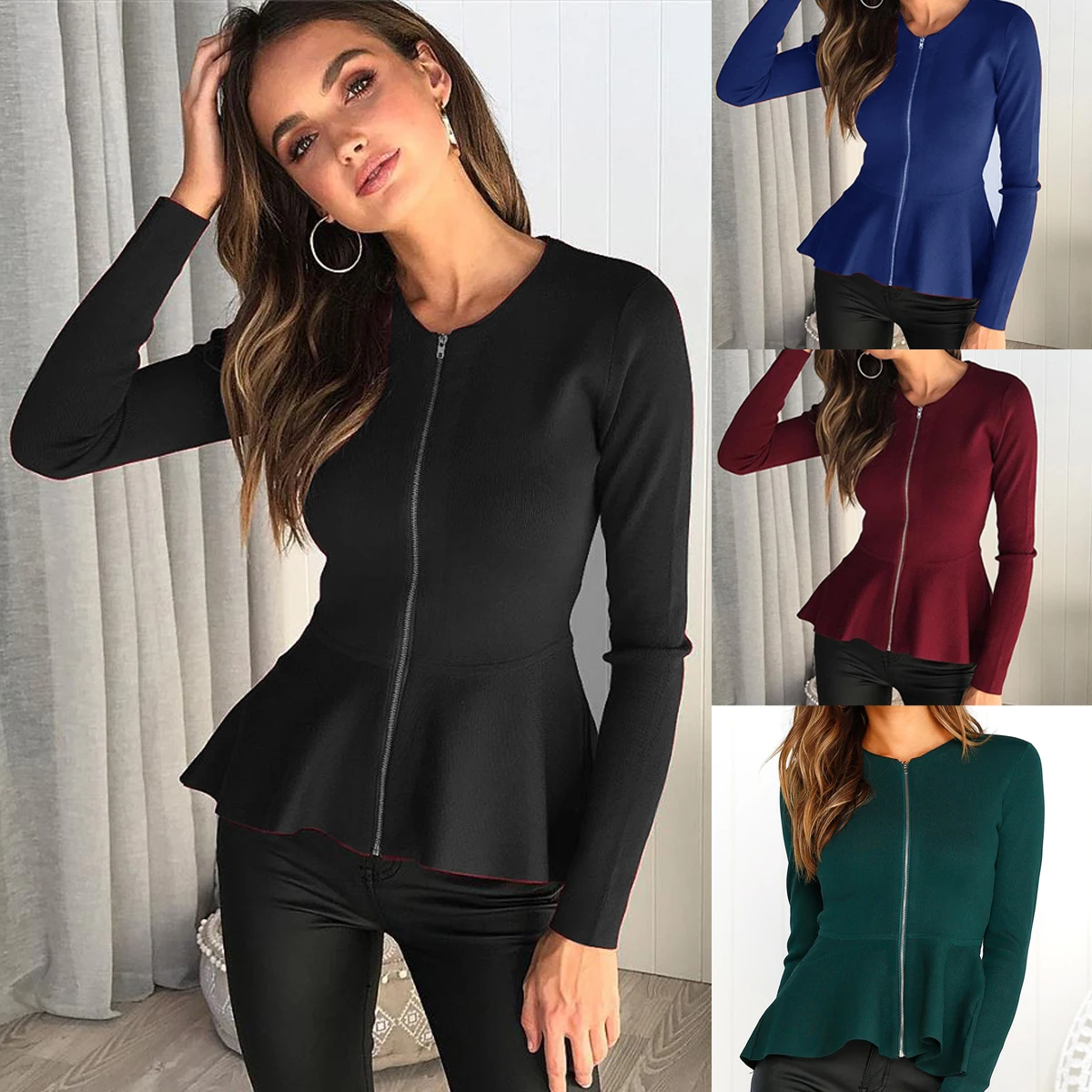 Tailored peplum top Clearance, Womens Ladies Zipper Peplum Ruffle Plus Clearance