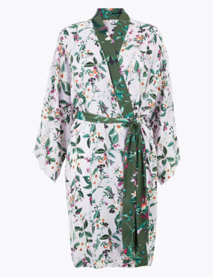 Short wrap dressing gown Clearance, Satin Floral Wrap Short Dressing Gown Clearance