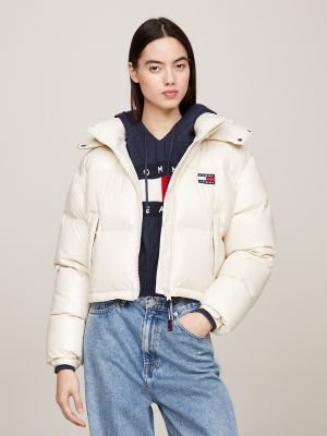 Cropped puffer winterjacke tommy hilfiger Clearance, Cropped Fit Puffer-Jacke mit Logo | Weiß | Tommy Hilfiger Clearance