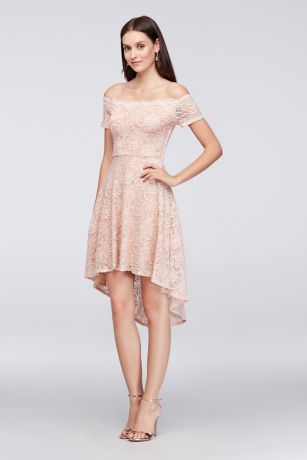 Low shoulder dress Clearance, Off-the-Shoulder Lace High-Low Dress Clearance