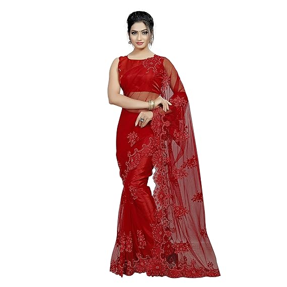Amazon red net saree Clearance, Buy DESIGNER DESIGNER Women Net Saree Clearance