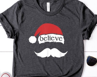 Believe santa shirt Clearance, Believe Santa Hat Christmas Shirt Clearance
