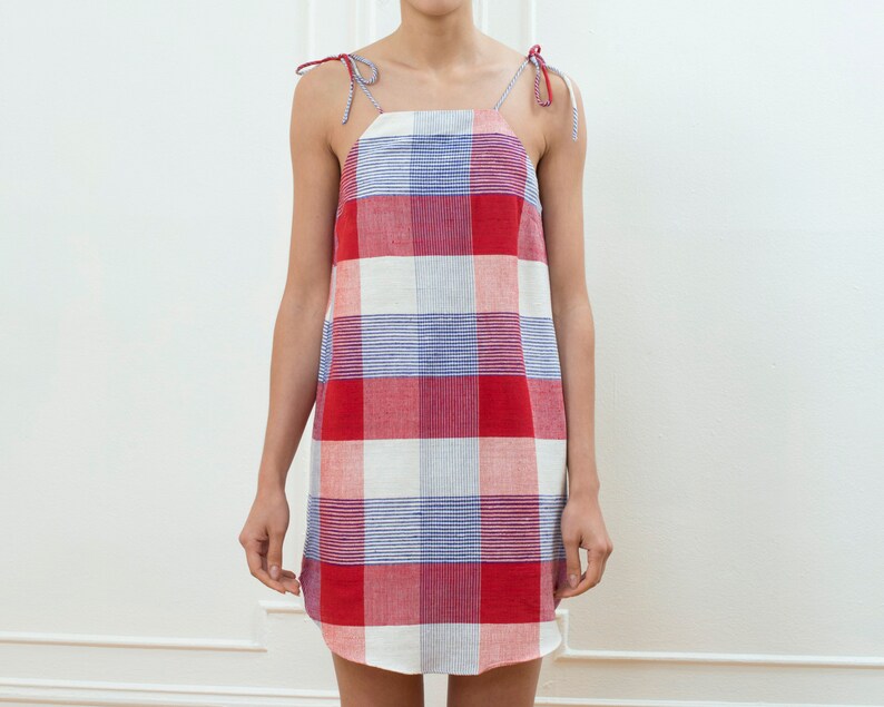 Plaid mini slip dress Clearance, 80s red white blue plaid mini slip Clearance