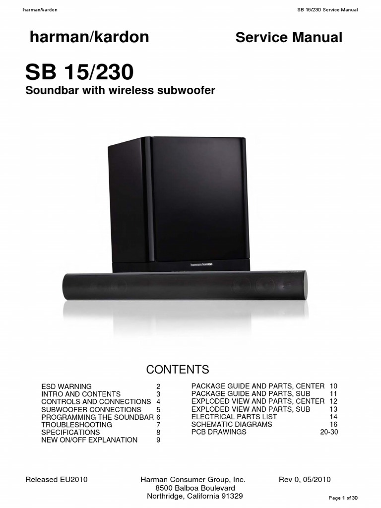 Harman kardon sb15 Clearance, Инструкция Harman Kardon SB 15/230 (12 Clearance