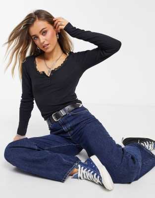 Lace henley top Clearance